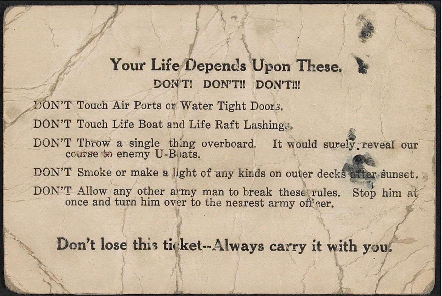 Soon a rumor began circulating as to how we didn’t have a strong enough convoy, and we’d all go down in the middle of the Atlantic before making it to France.